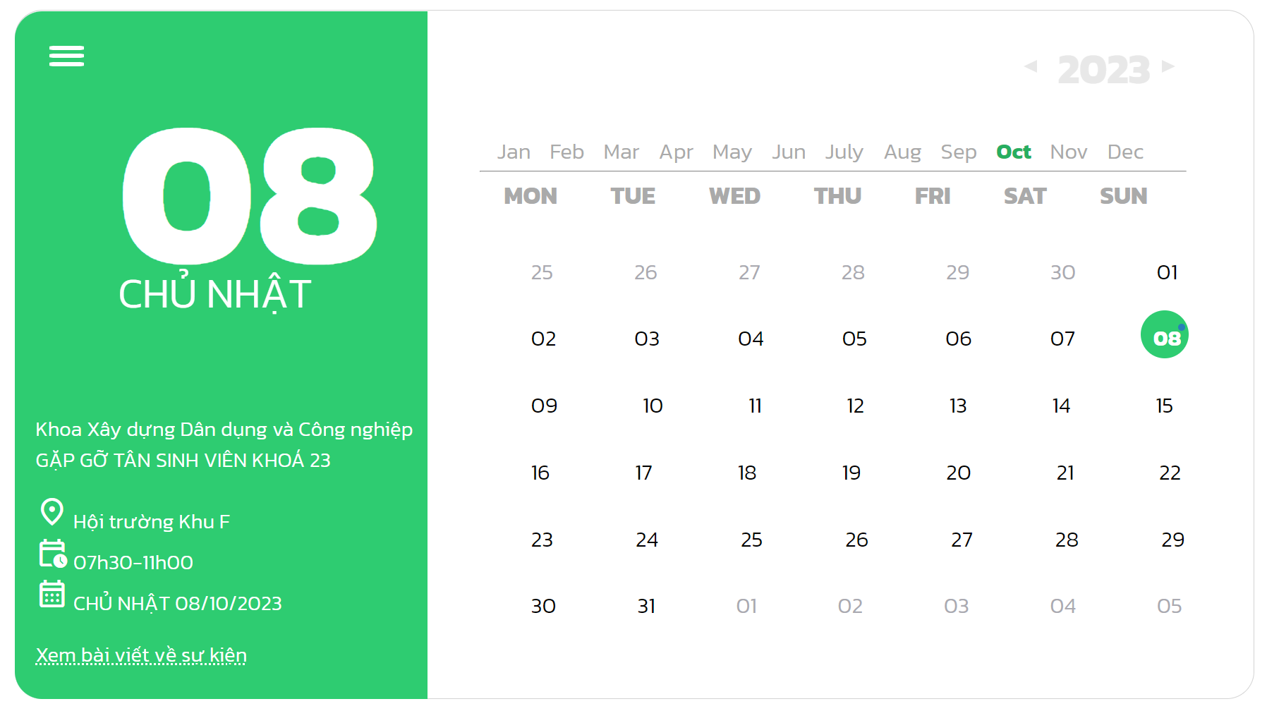 Gặp gỡ Tân sinh viên khoá 23 fCE 05, Th10, 2023 Sinh viên 05Th10, 2023 Một số hình ảnh buổi gặp mặt: Previous Tổ chức đánh giá năng lực tiếng Anh chuẩn đầu ra cho sinh viên các CSĐT thuộc ĐHĐN, đợt thi ngày 22&29/10/2023 Tháng 10 4, 2023 Next Tổ chức giải Bóng chuyền truyền thống CBVC-NLĐ năm 2023 Tháng 10 9, 2023