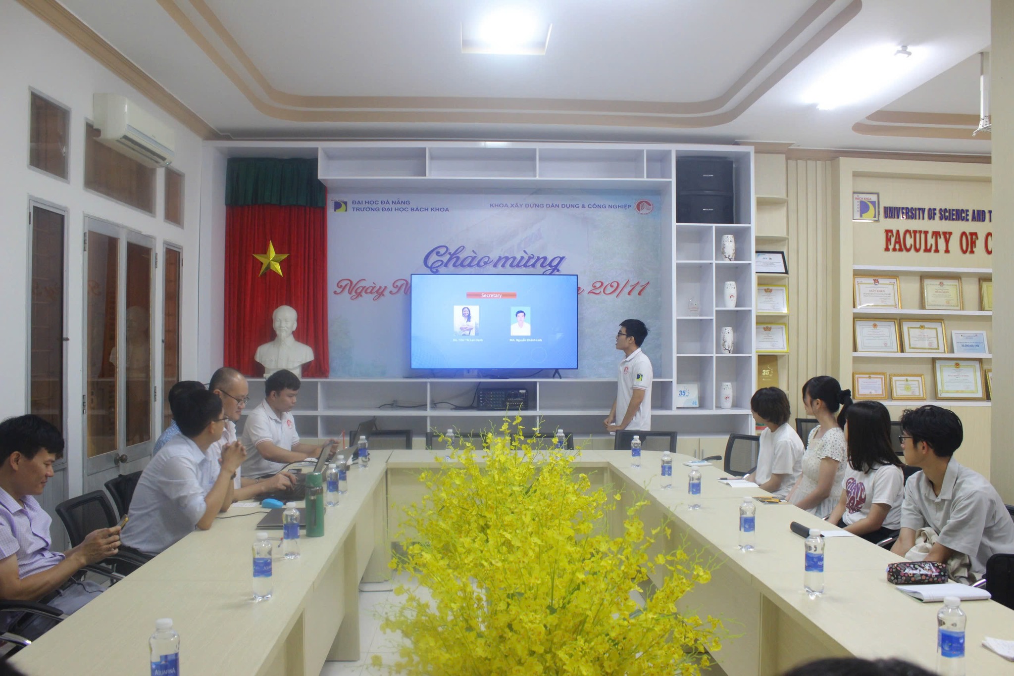 Tham dự buổi gặp mặt về phía Khoa Xây dựng DD&CN có PGS.TS. Trần Quang Hưng (Trưởng Khoa), PGS.TS. Nguyễn Văn Chính (Phó Trưởng Khoa), TS. Trần Thanh Bình, TS. Phạm Ngọc Vinh cùng với các bạn sinh viên của Khoa.