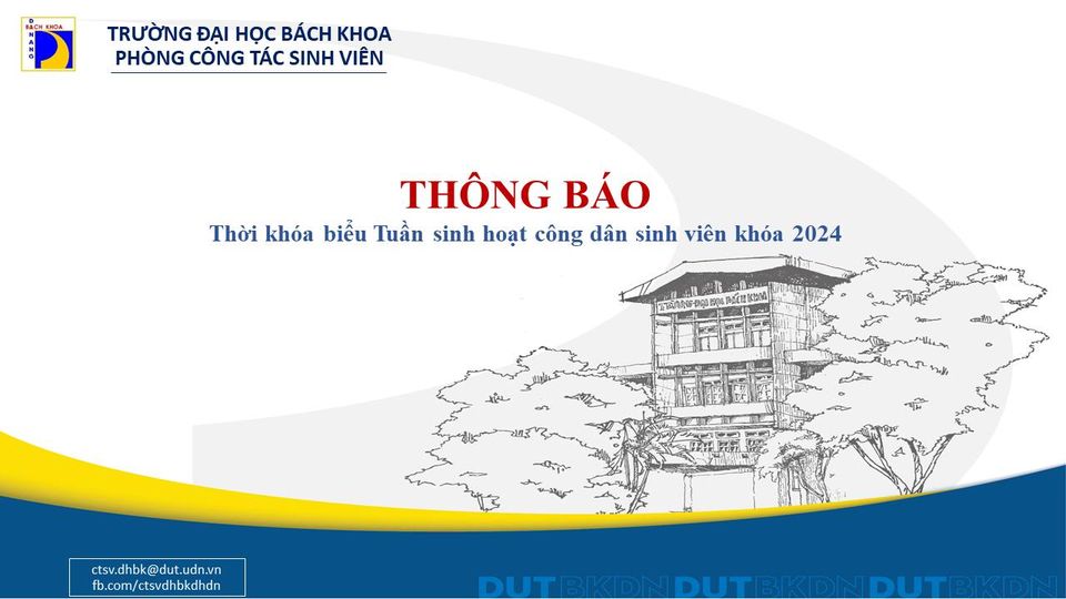 Phòng CTSV thông báo về thời khóa biểu Tuần Sinh hoạt công dân sinh viên khóa 2024 (Lịch học có sự điều chỉnh so với thông báo số 3376/TB-ĐHBK ngày 19/8/2024)